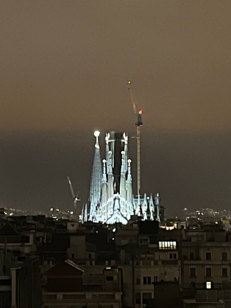 Eden najbolj romantičnih trenutkov vikenda je bil večer v baru: 83.3 Terrace Bar. Sedele smo z Nikinimi prijateljicami Gaio in Michelle na terasi, pile sangrio in gledale osvetljeno Sagrado Familio.