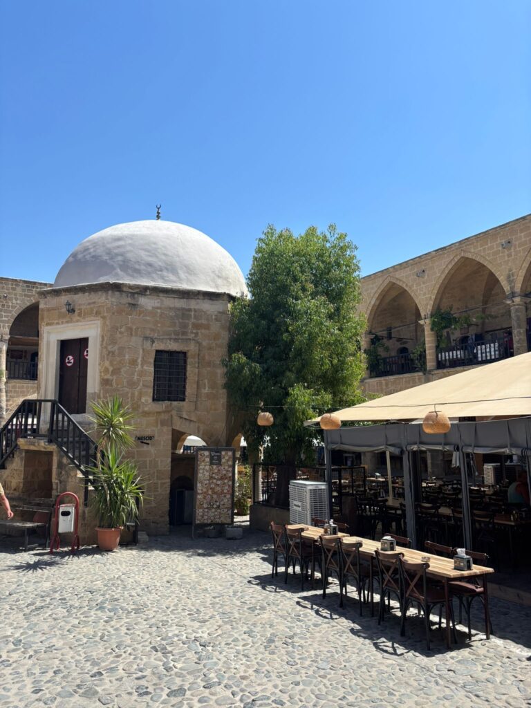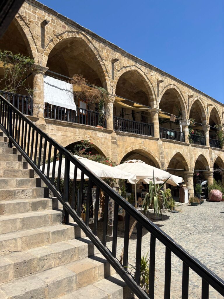 Vožnja proti Kyrenii je trajala dobro uro in pol, a je bila prava panoramska poslastica. Ustavili smo se pri samostanu Bellapais, kjer so nam postregli s “tradicionalnimi palačinkami” kar je vedno dober znak, tudi če ne veš točno, kaj je v njih.