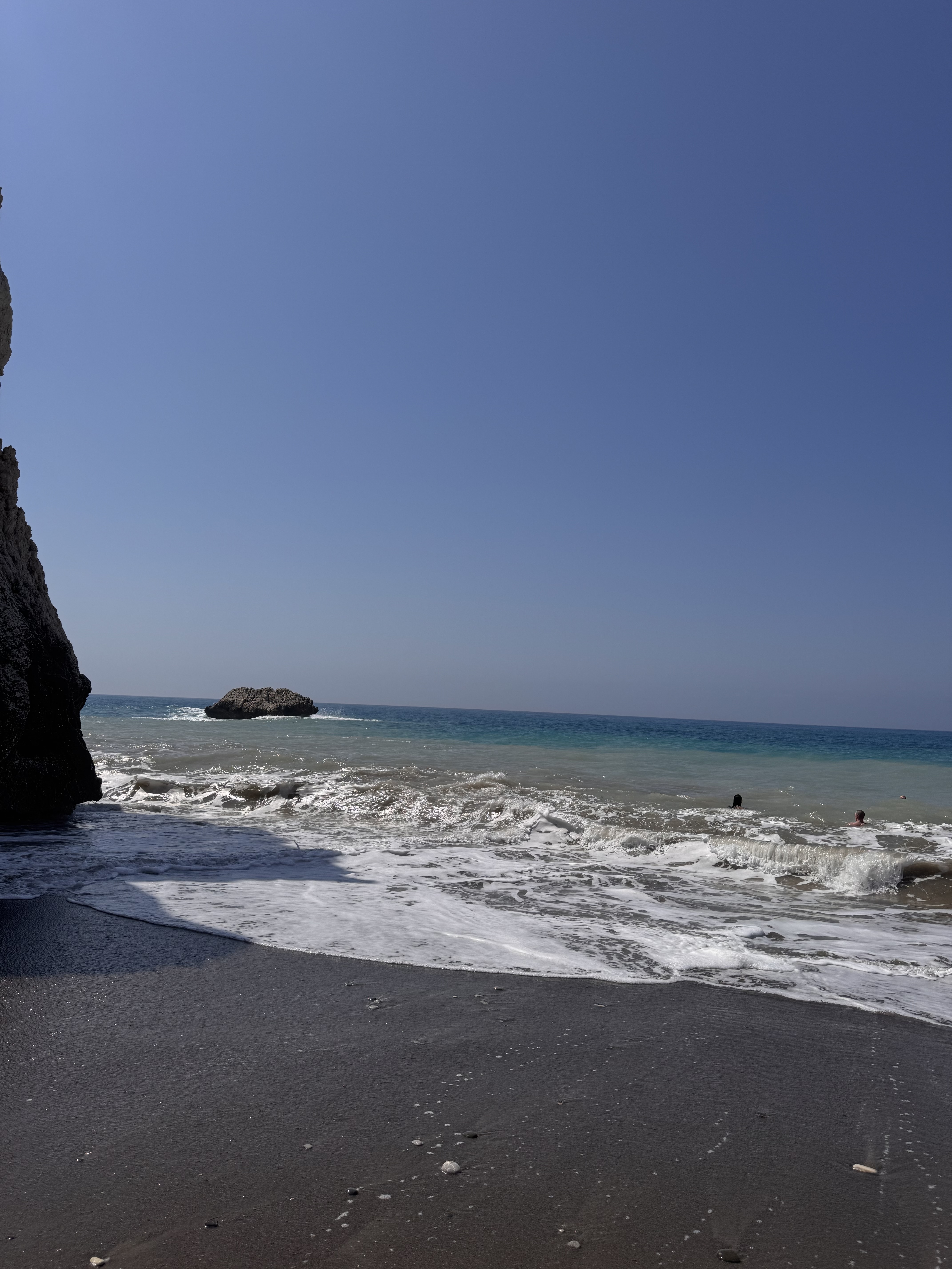 Zjutraj smo obrnili volan proti vzhodu. Prvi postanek: Petra tou Romiou, Afroditina skala. Pravijo, da če jo trikrat preplavaš, dobiš večno mladost, ljubezen in lepoto.