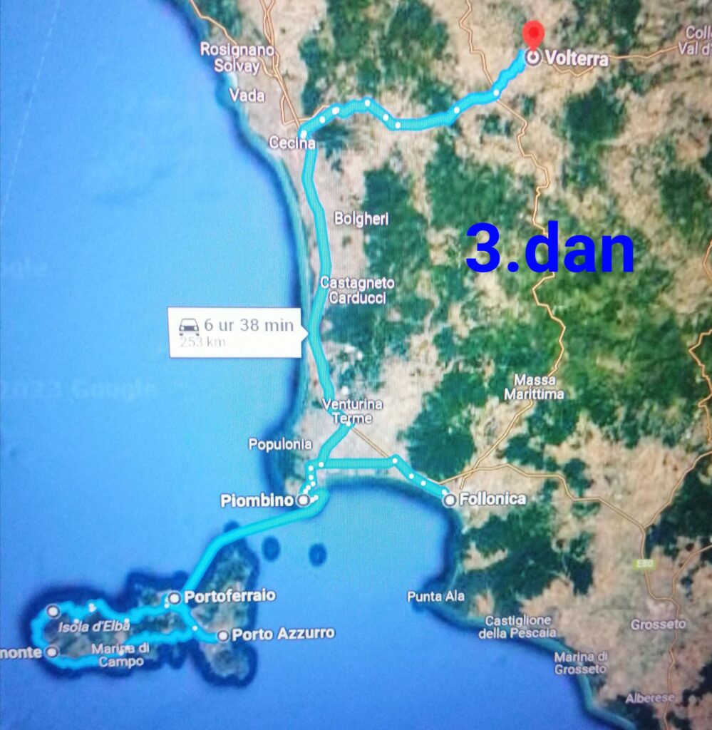 Tretji dan mototure nas je po obilnem zajtrku čakal otok Elba. Odpeljali smo se v trajektno luko in kupili karte. Za dve osebi in motor naju je prišlo 120 eur.