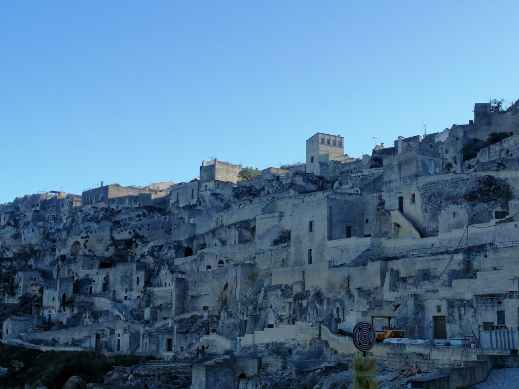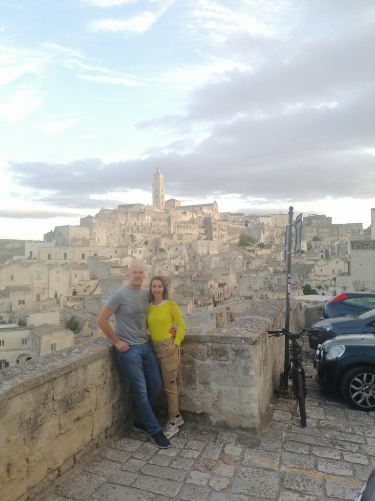 To starodavno mesto naju je očaralo s svojo arhitekturo in zgodovinskim značajem. Mesto je bilo zanimivo, sprehodila sva se po ulicah starih srednjeveških zgradb, poslušala sva zgodovino in ugotovila, da je bila Matera leta 2019 razglašena za evropsko prestolnico kulture. Najbolj me je prevzelo mesto Sassi di Matera, kjer sva opazila bivališča vkopana v samo apnenčasto kamnino.