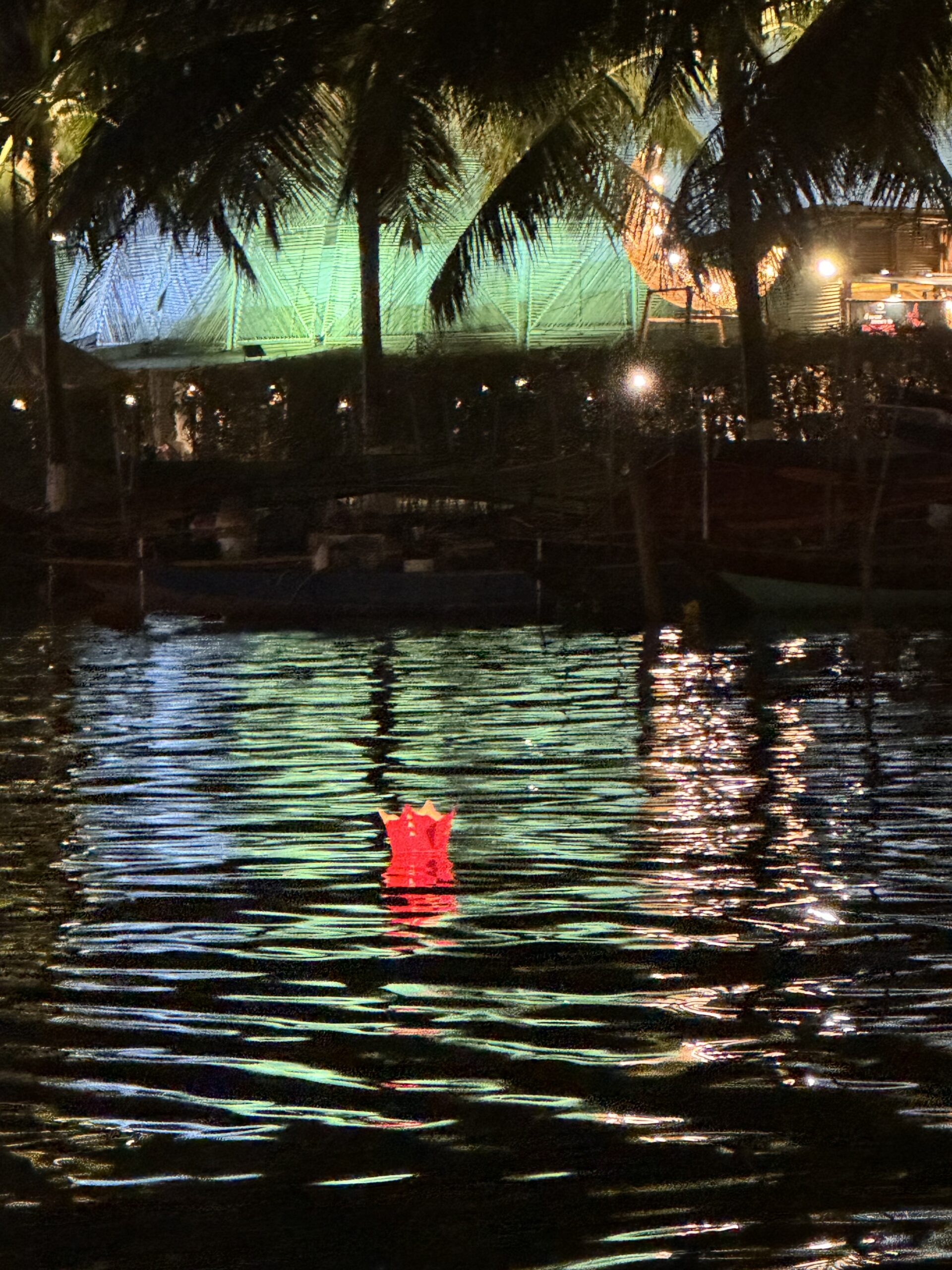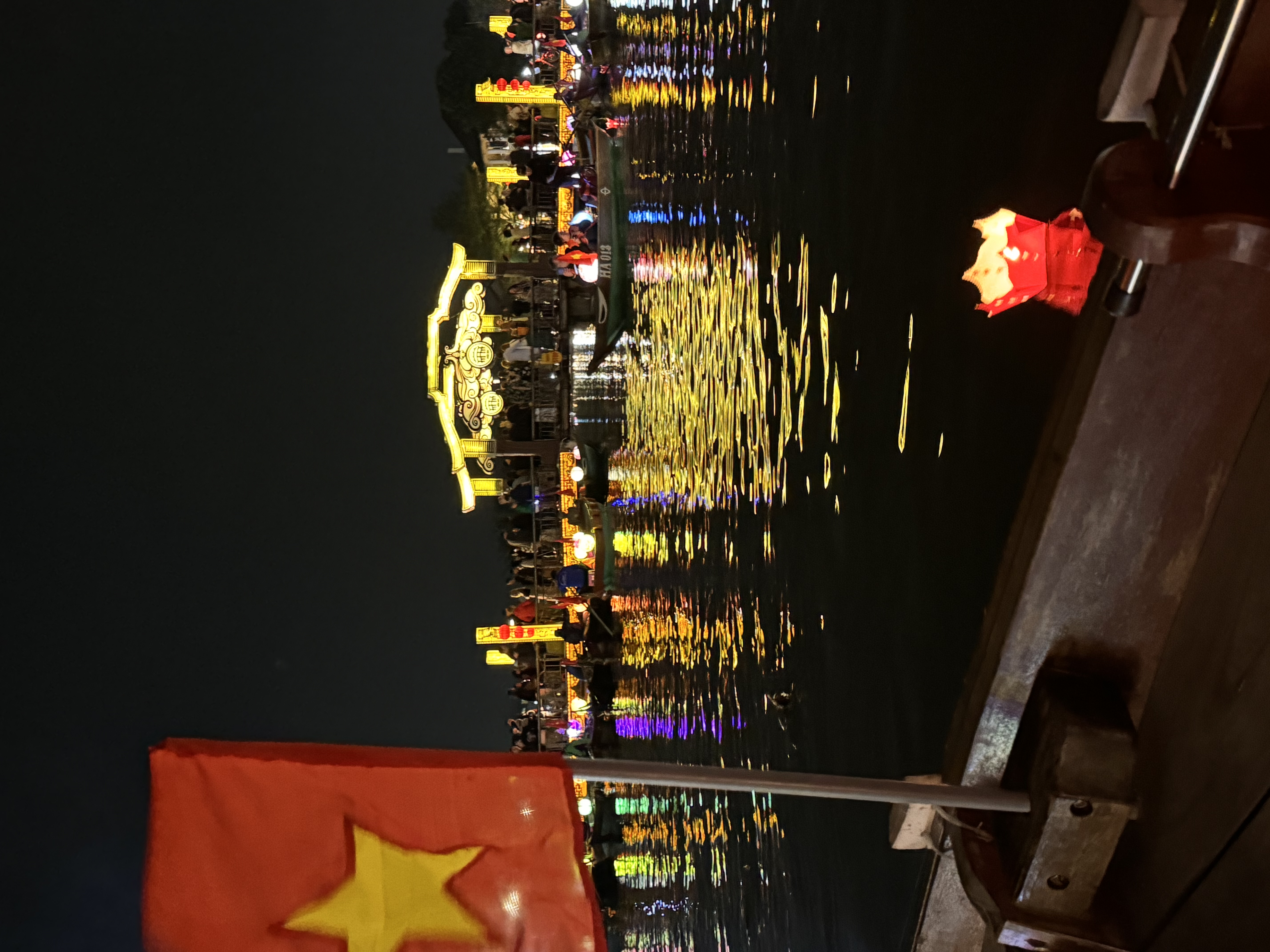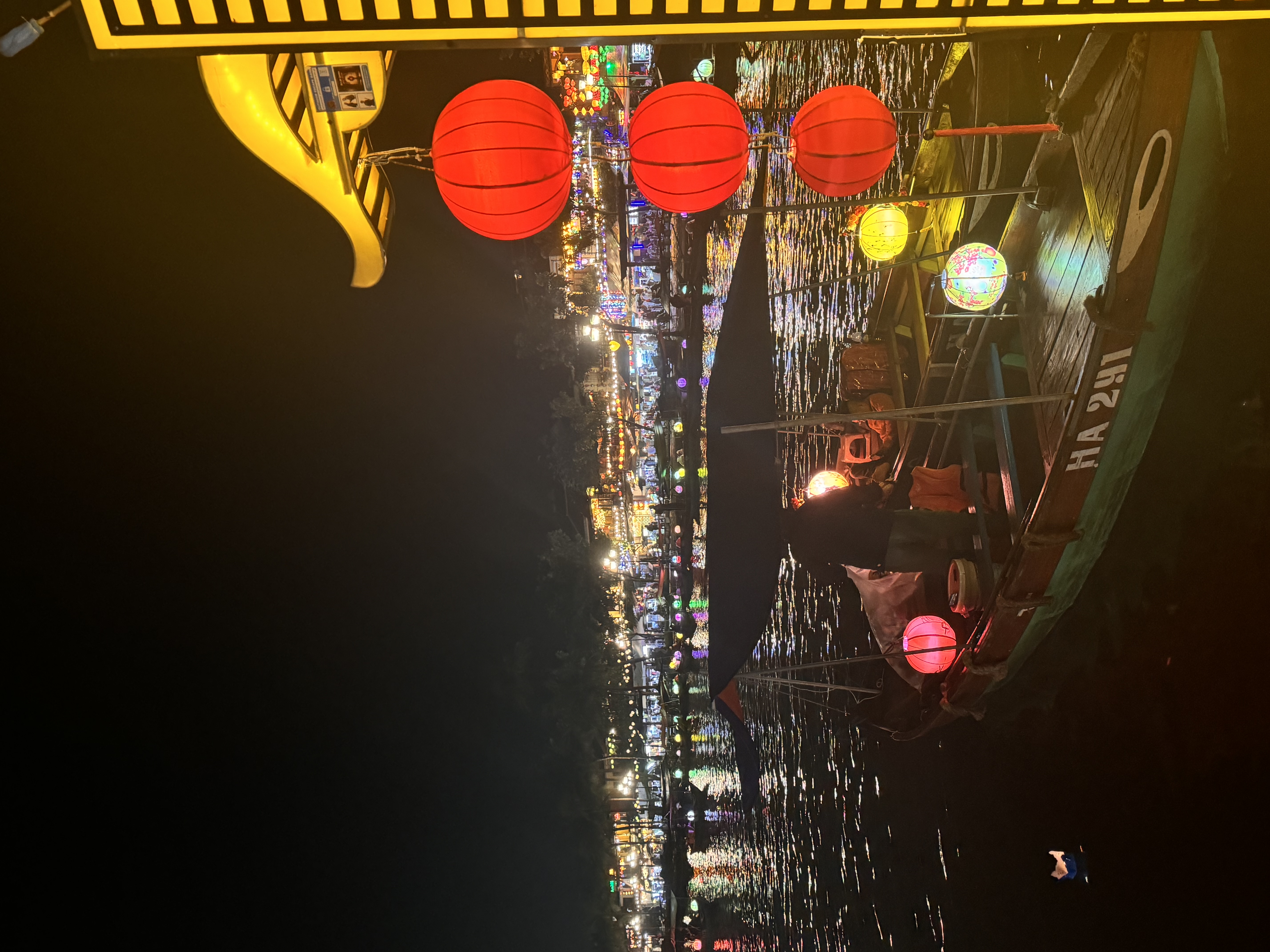 Z ladjico v Hoi An smo se popeljali po reki, spuščali lampijončke in opazovali lanterne, ki so osvetljevale mesto. Ko je ura odbila polnoč, so nas obkrožili ognjemeti, koktejli in pesem Happy New Year od Abbe.